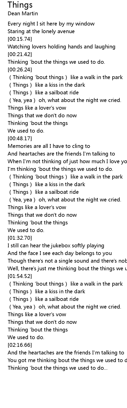 | [01:49.71] | Well, there' s just me thinking bout the things we used to do. |