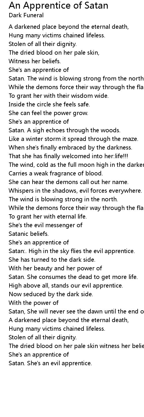 Satan:. High in the sky flies the evil apprentice. |