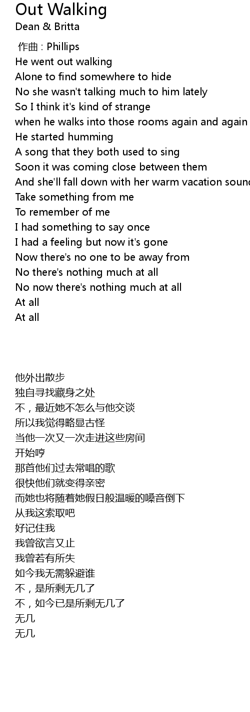 | [00:01.430] | He went out walking |
