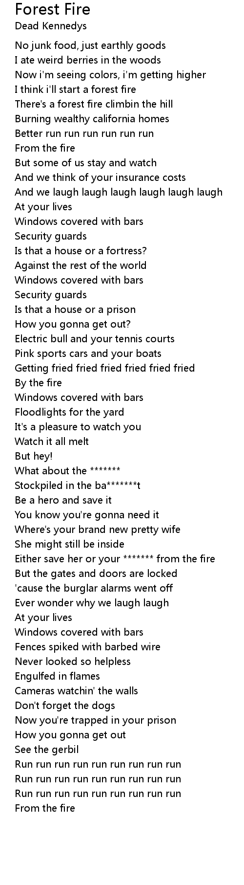 There's a forest fire climbin the hill |