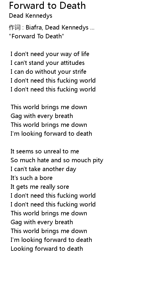 | I' m looking forward to death | |