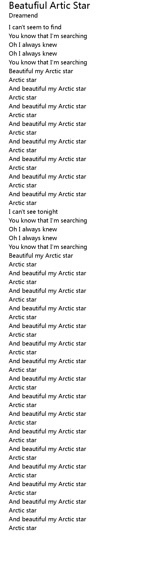 | [00:40.138] | Beautiful my Arctic star |
