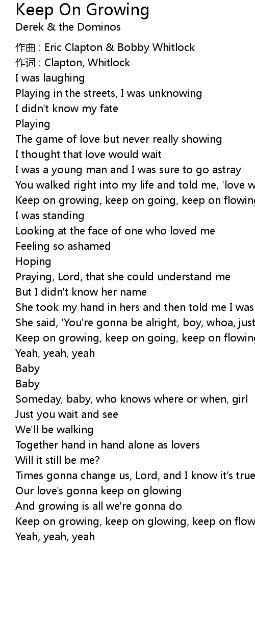 | Keep on growing, keep on going, keep on flowing | |