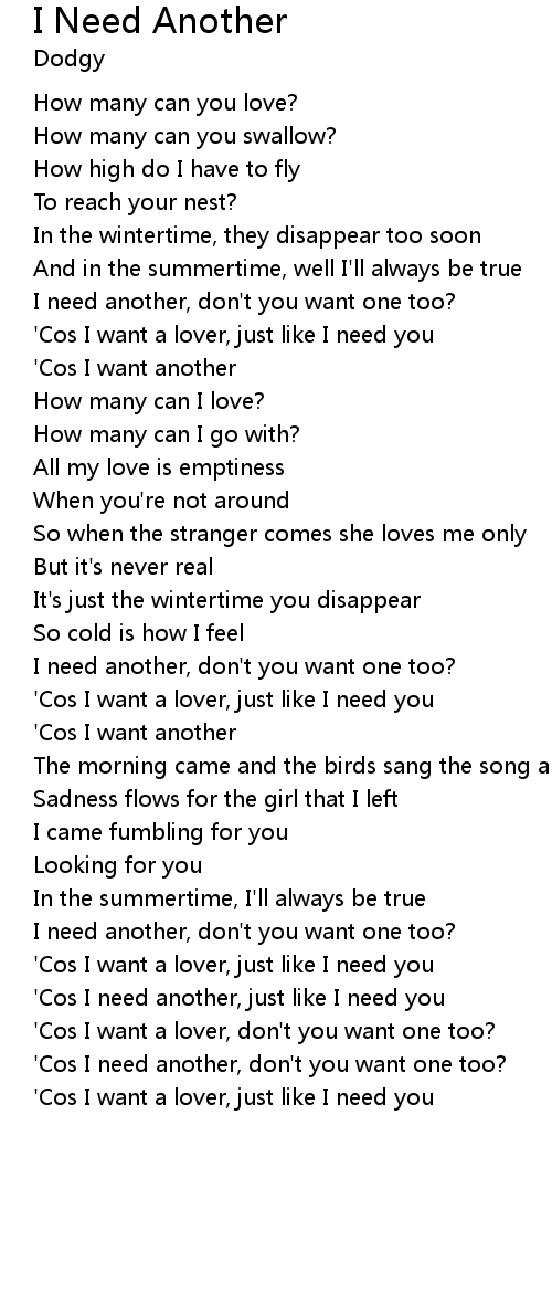 'Cos I need another, don't you want one too? |