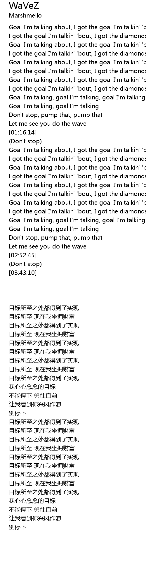 | [02:43.97] | Goal I'm talking, goal I'm talking, goal I'm talking 'bout |