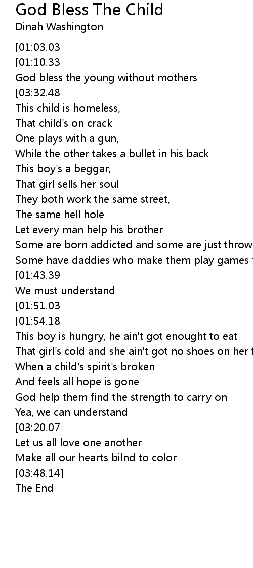 [03:41.28][01:10.33][00:14.77] God bless the child who suffers