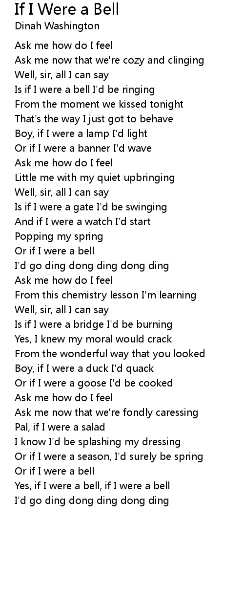 Is if I were a bell I'd be ringing |