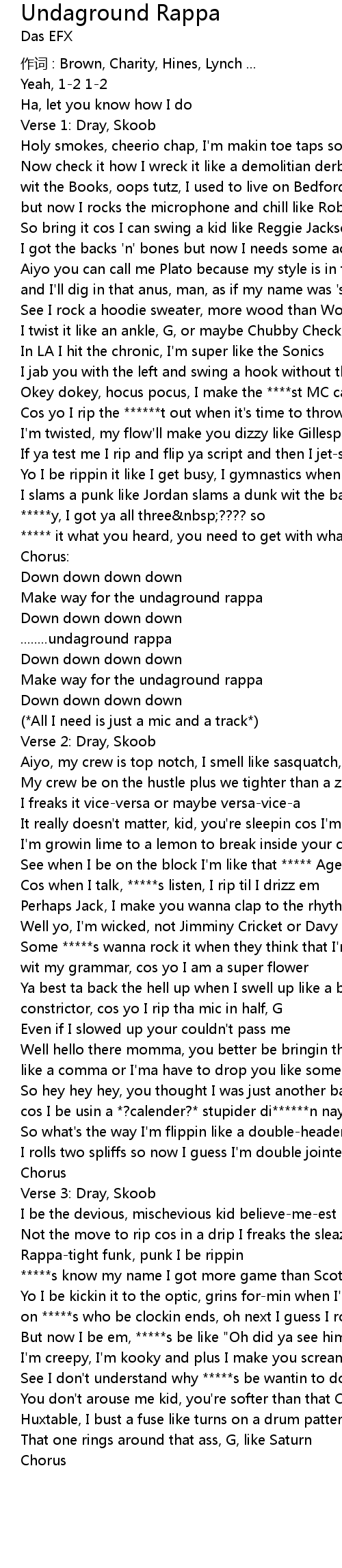 | Cos yo I rip the ******t out when it's time to throw my rhyme out | |