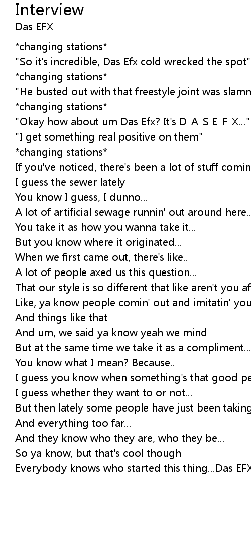 "Okay how about um Das Efx? It's D-A-S E-F-X..." |