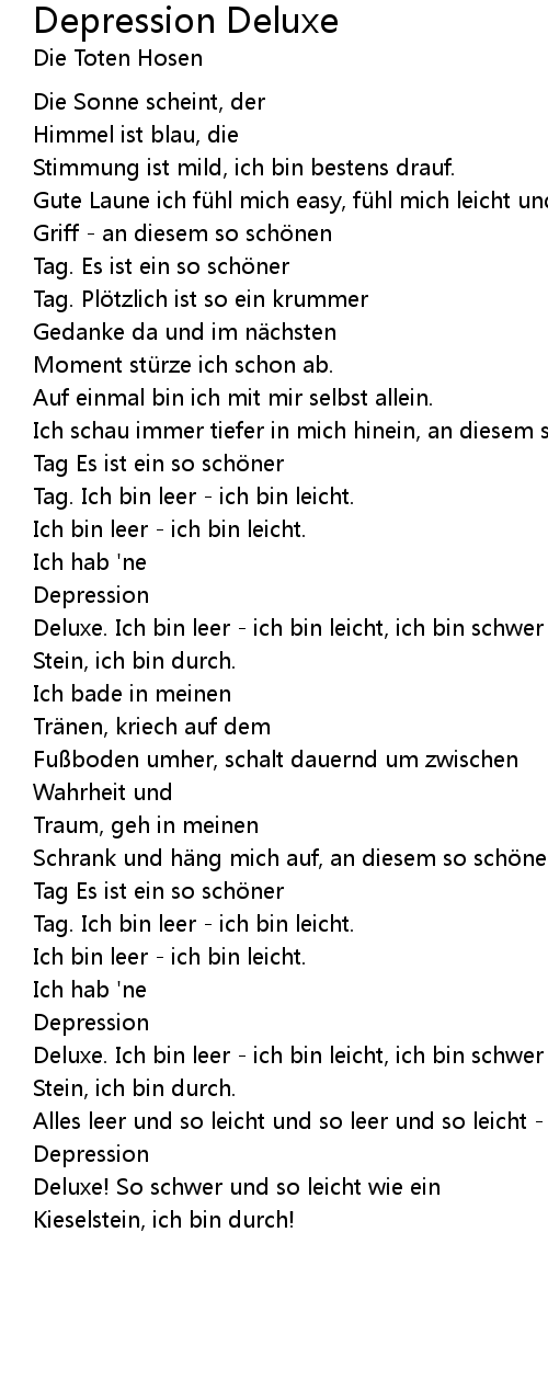 | Deluxe. Ich bin leer ich bin leicht, ich bin schwer wie ein | |