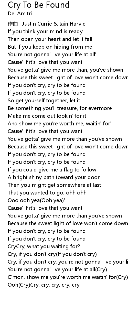 | If you don' t cry, cry to be found | |