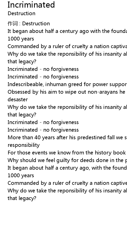 | More than 40 years after his predestined fall we still got to take the responsibility | |