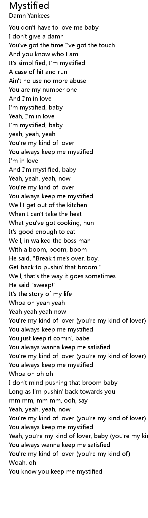 And I'm mystified, baby |