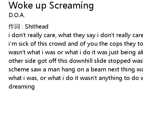 | Song | Woke up Screaming |