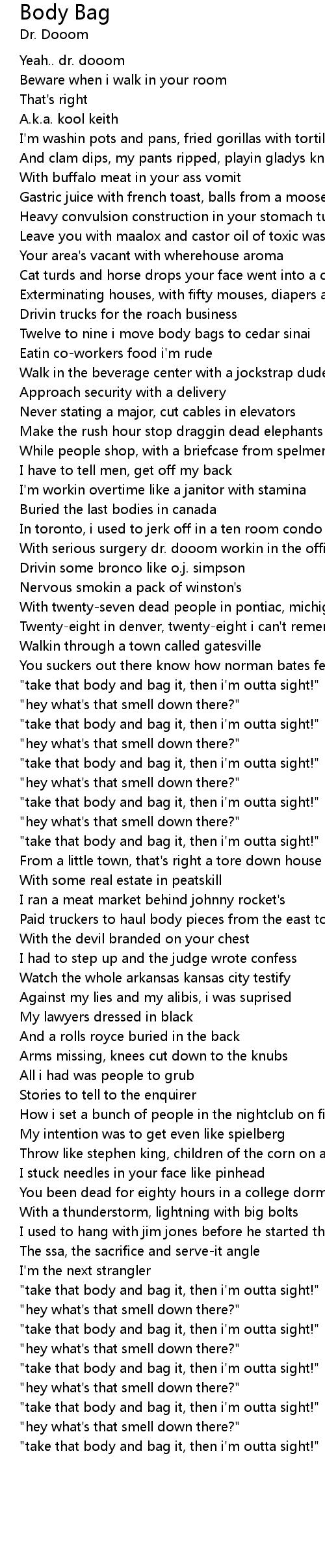 "take that body and bag it, then i'm outta sight!" |