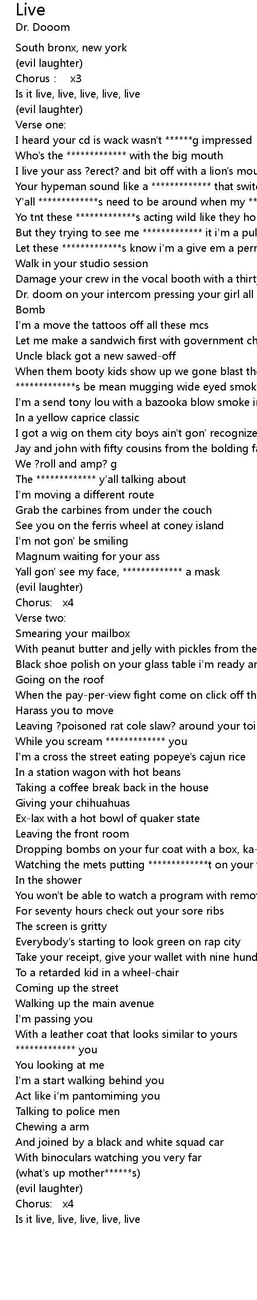 | Dr. doom on your intercom pressing your girl all night with a ******g | |