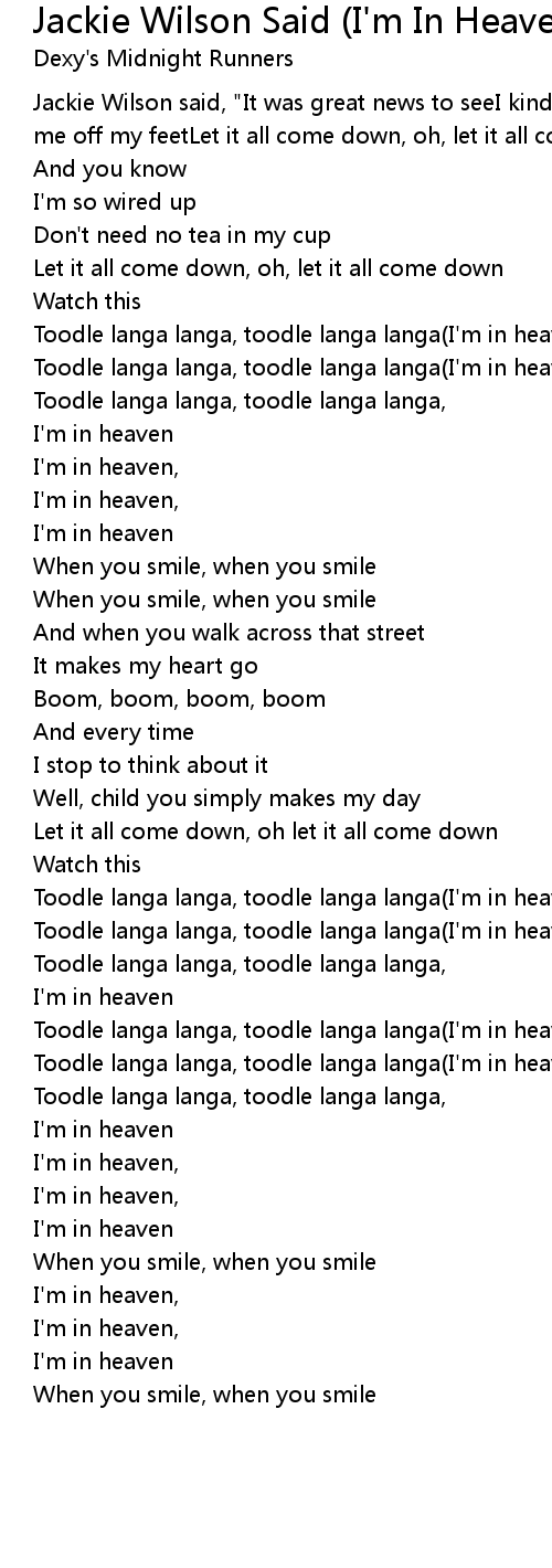 Jackie Wilson Said (I'm In Heaven When You Smile) Lyrics