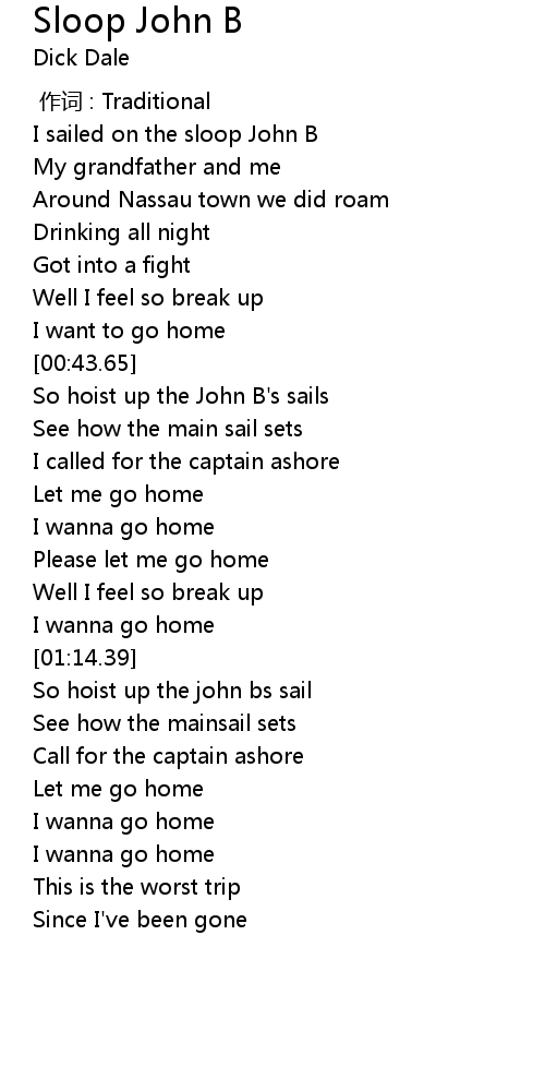 | [00:45.71] | So hoist up the John B's sails |
