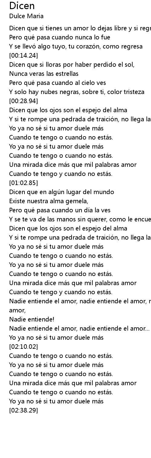 | [00:42.56] | Cuando te tengo o cuando no está s. |