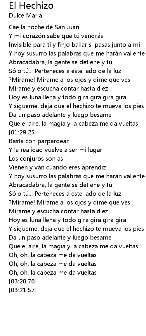 | [02:49.74] | Que el aire, la magia y la cabeza me da vueltas |