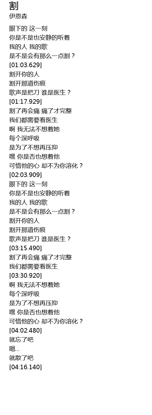| [03:18.230] | 割了再会痛 痛了才完整 |