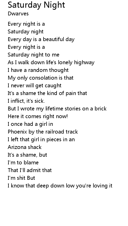 | Saturday night to me | |