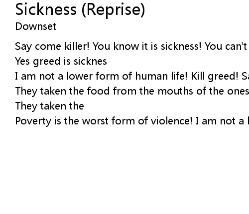 | Song | Sickness (Reprise) |