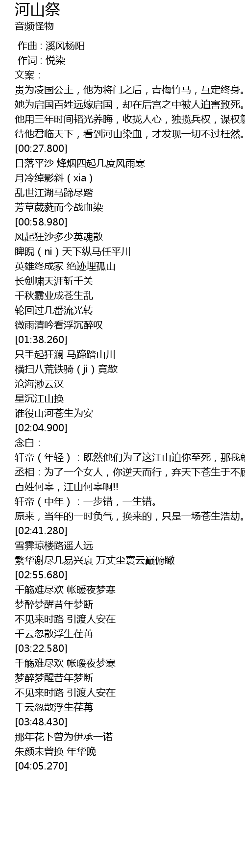 | [02:20.040] | 百姓何辜,江山何辜啊!! |