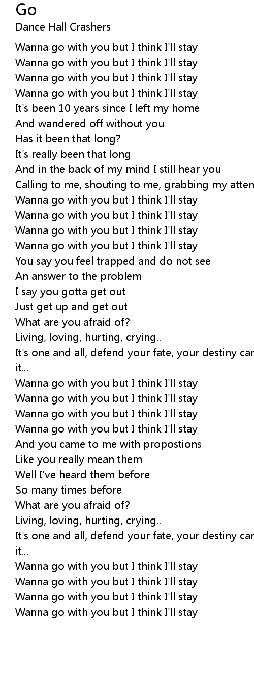 Wanna go with you but I think I'll stay |