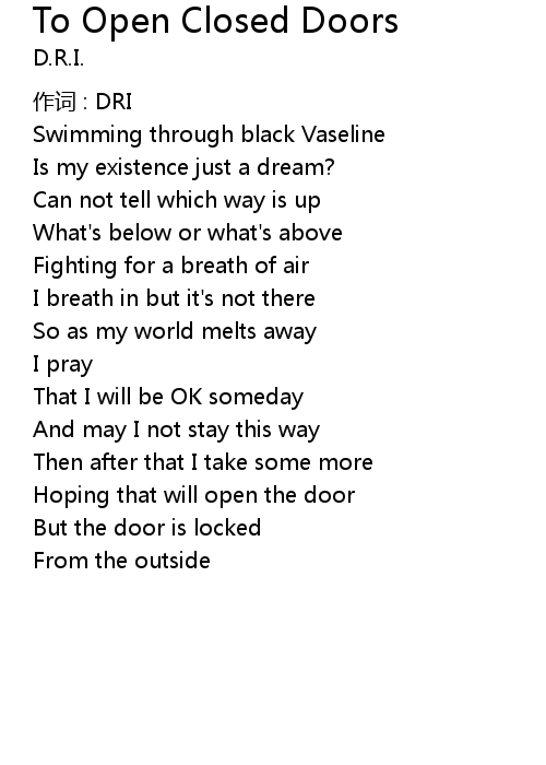 | Song | To Open Closed Doors |