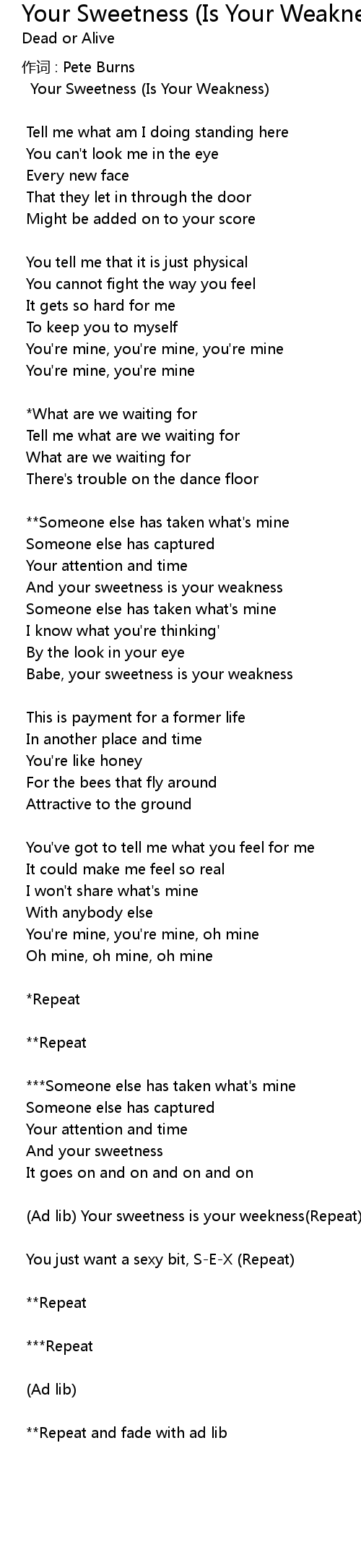 | (Ad lib) Your sweetness is your weekness(Repeat) | |
