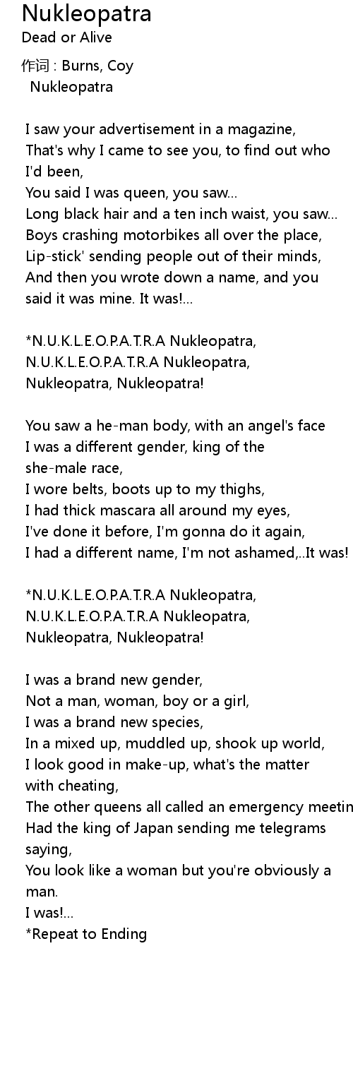 | N.U.K.L.E.O.P.A.T.R.A Nukleopatra, | |
