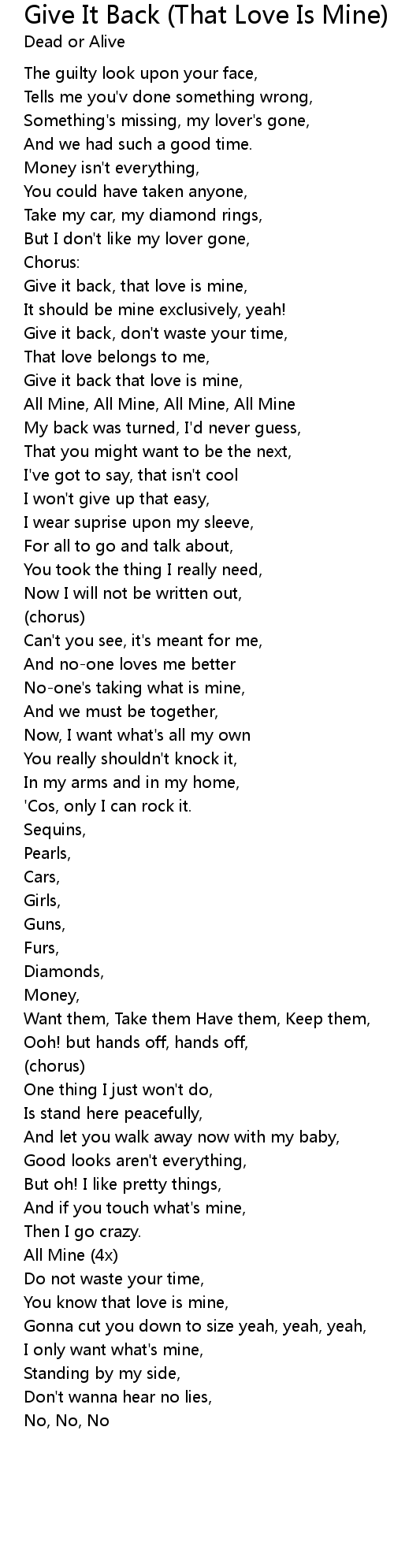 Give it back that love is mine,