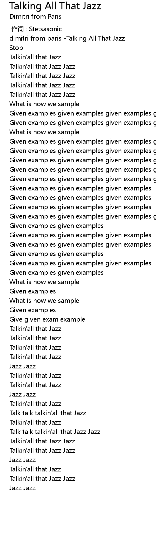 | [05:31.888] | Talk talk talkin' all that Jazz Jazz |