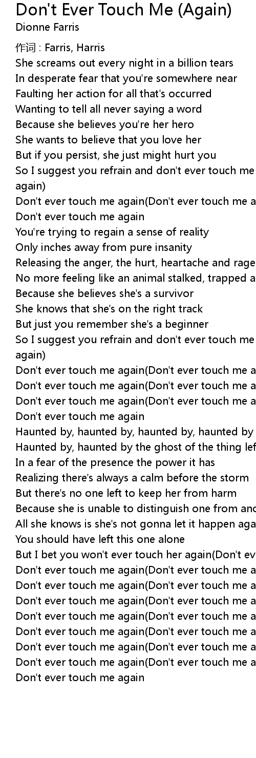 | But I bet you won' t ever touch her again Don' t ever touch me again | |