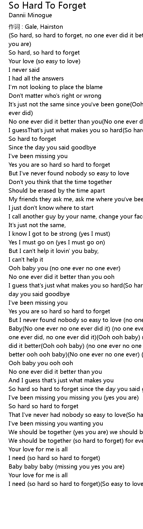 | I guess that' s just what makes you so hard So hard so hard to forget, since the day you said goodbye | |