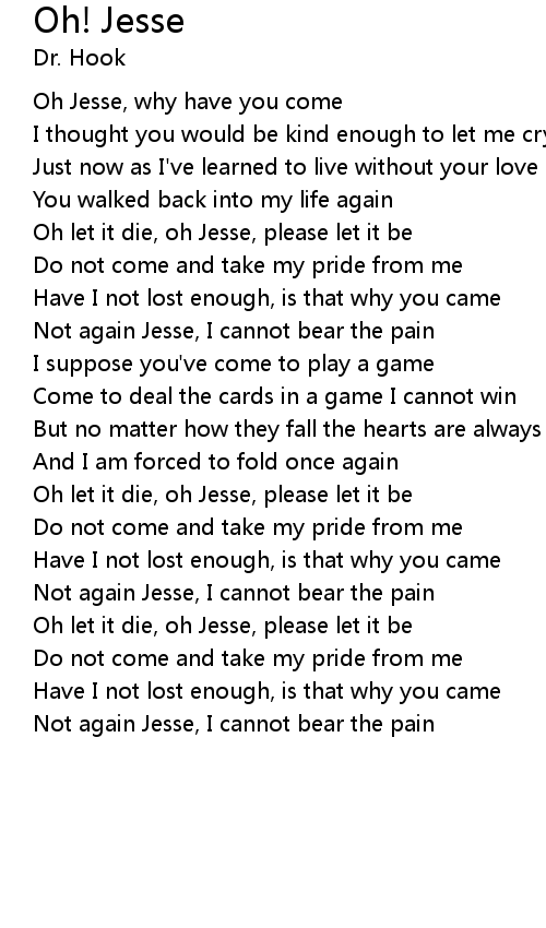 Oh let it die, oh Jesse, please let it be |