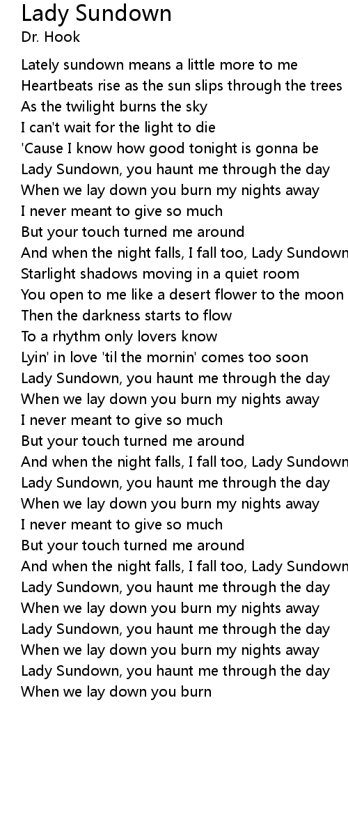 And when the night falls, I fall too, Lady Sundown, Lady Sundown |