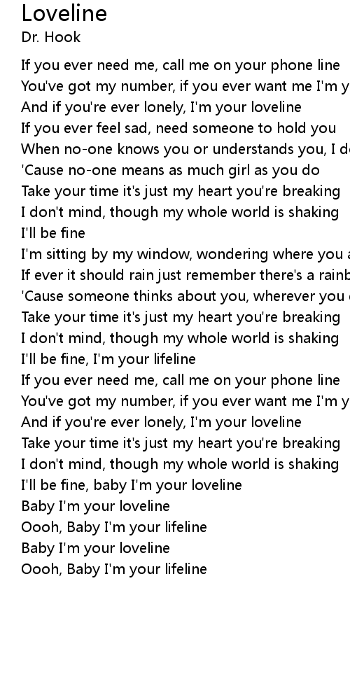 And if you're ever lonely, I'm your loveline |