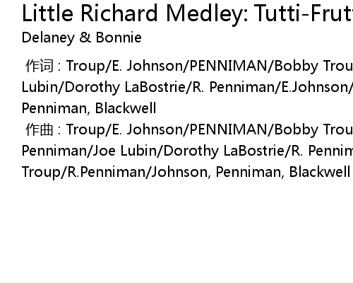 | [00:00.000] | zuo ci : Troup E. Johnson PENNIMAN Bobby Troup Richard Penniman Joe Lubin Dorothy LaBostrie R. Penniman E. Johnson B. Troup R. Penniman Johnson, Penniman, Blackwell |