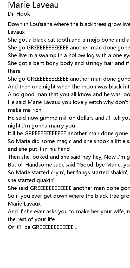 He said Marie Lavaux you lovely witch why don't you gimme a little charm gonna make me rich |