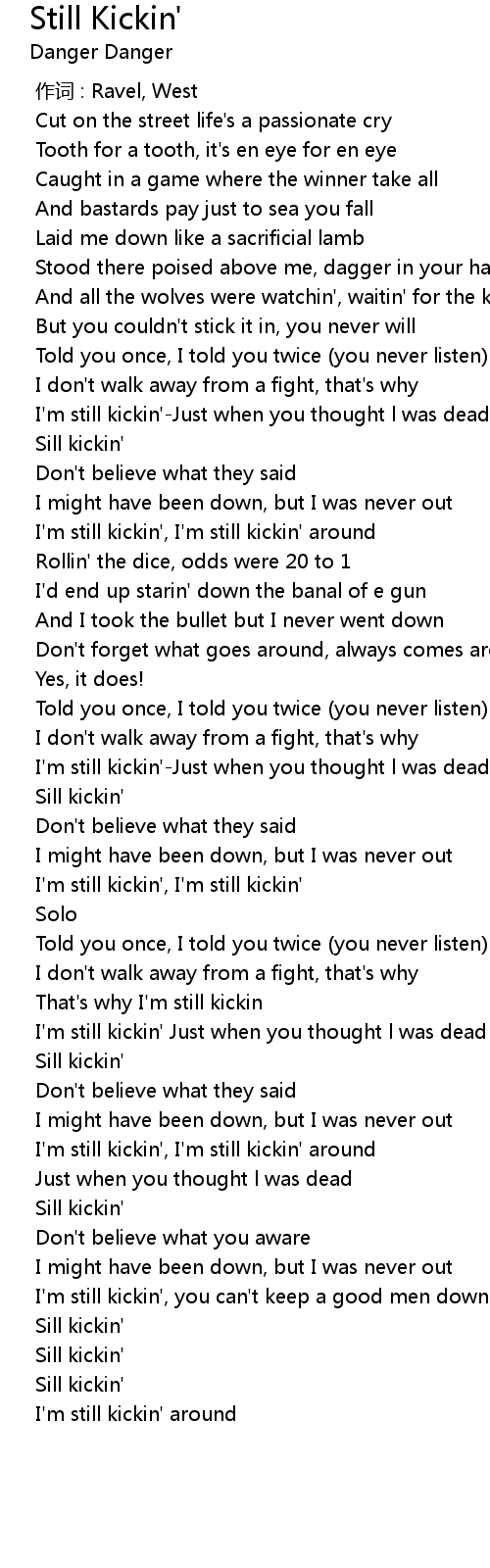 | [01:09.655] | I' m still kickin', I' m still kickin' around |