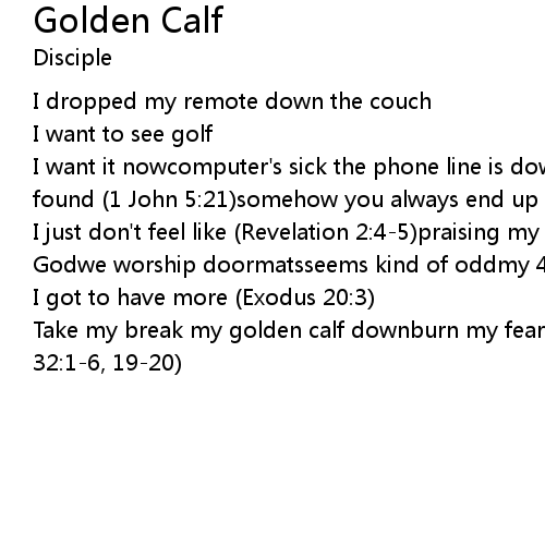 | Take my break my golden calf downburn my fear my golden calf down (Exodus 32:1-6, 19-20) |