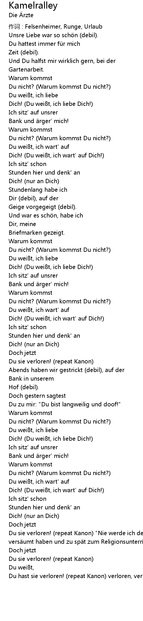 | 作词 : Felsenheimer, Runge, Urlaub | |