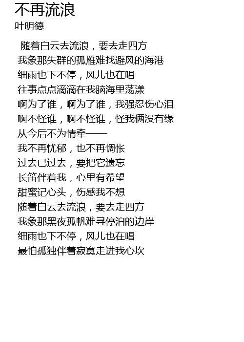 | suí zhe bái yún qù liú làng, yào qù zǒu sì fāng | |
