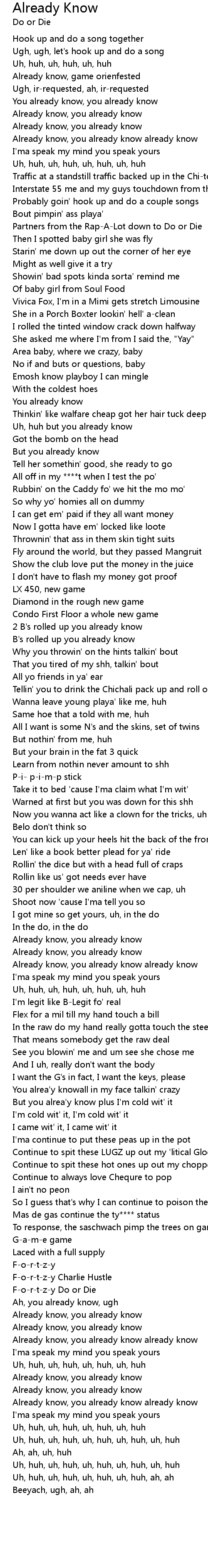 | Already know, you already know | |
