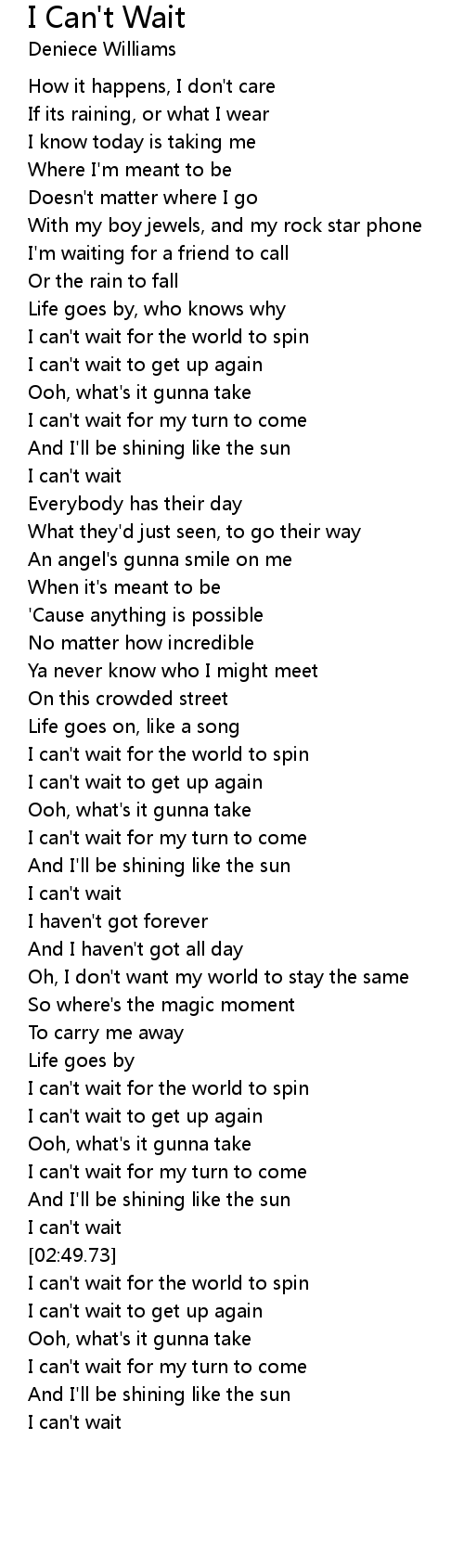 I Can't Wait Lyrics