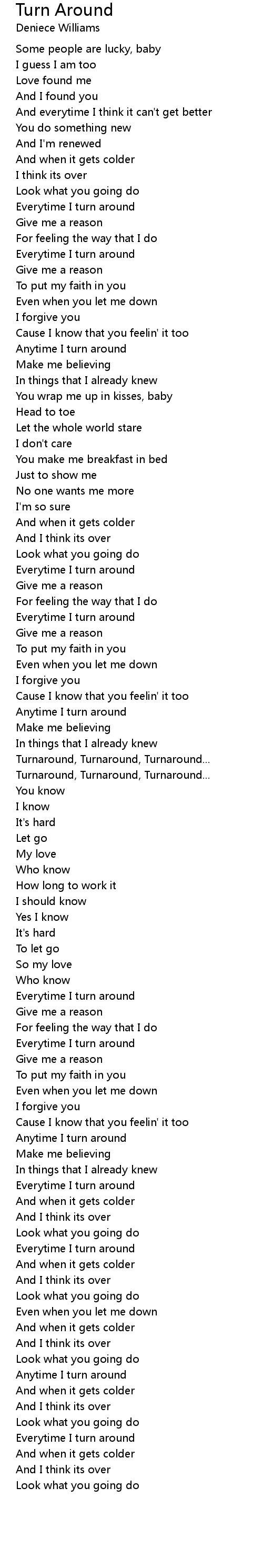 Everytime I turn around |