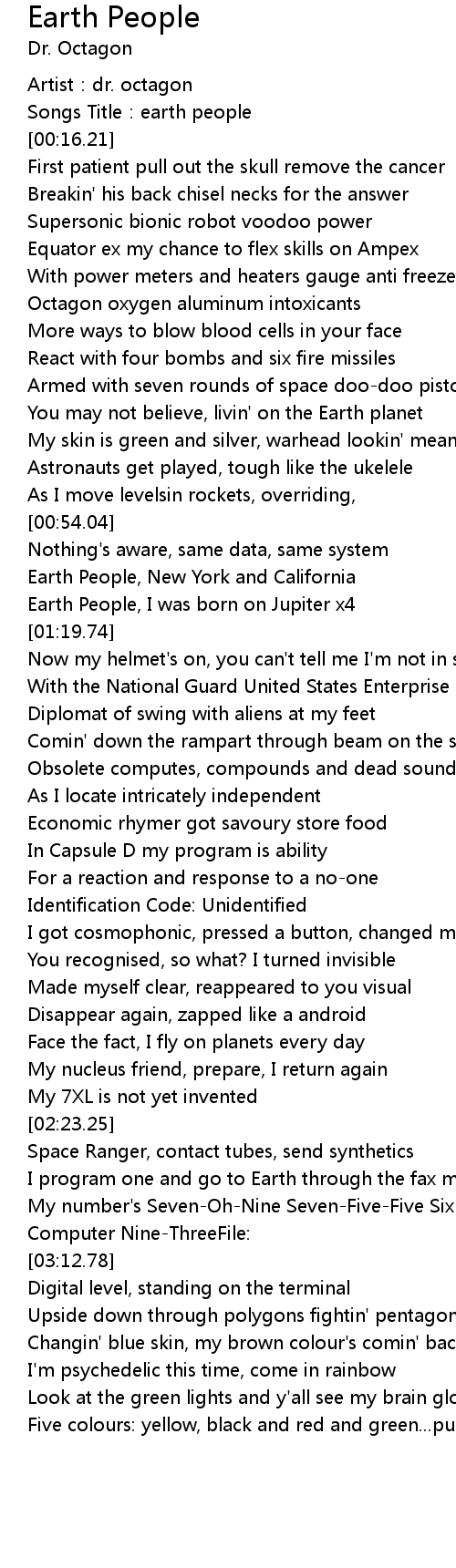 | [00:02.46] | Artist: dr. octagon |