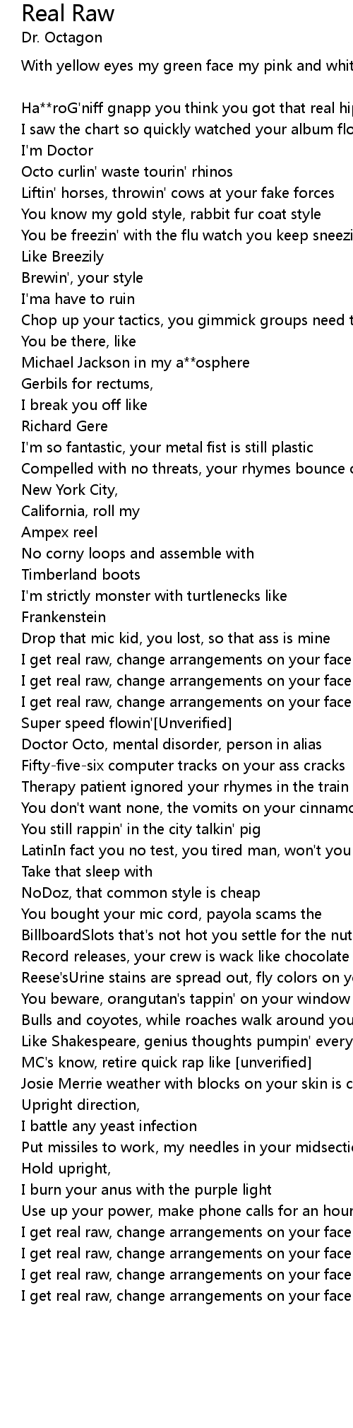 I get real raw, change arrangements on your face[Unverified] |